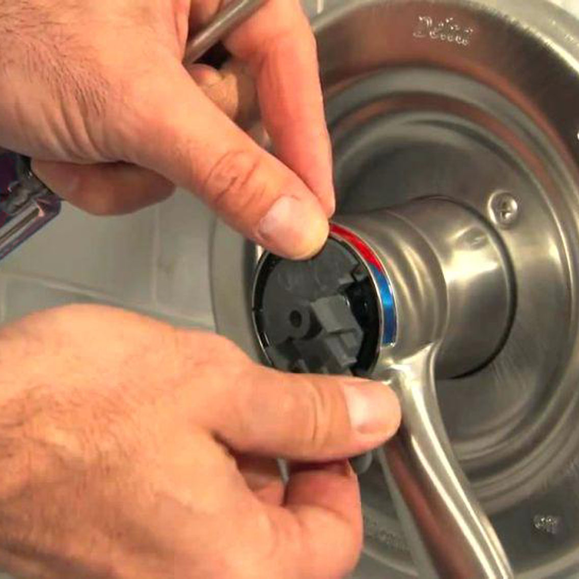 - Pry off the decorative cap on the handle, remove the handle screw.