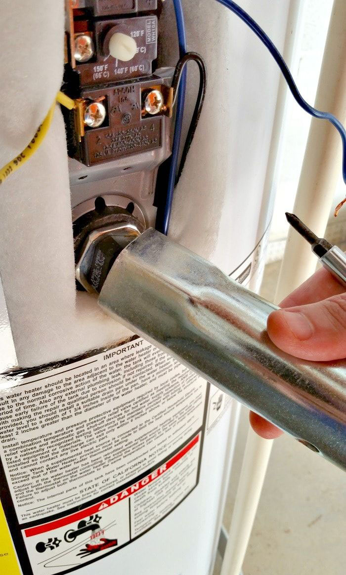- Disconnet power supply. Remove the elements, soak with vinegar and then scrape off the scale.